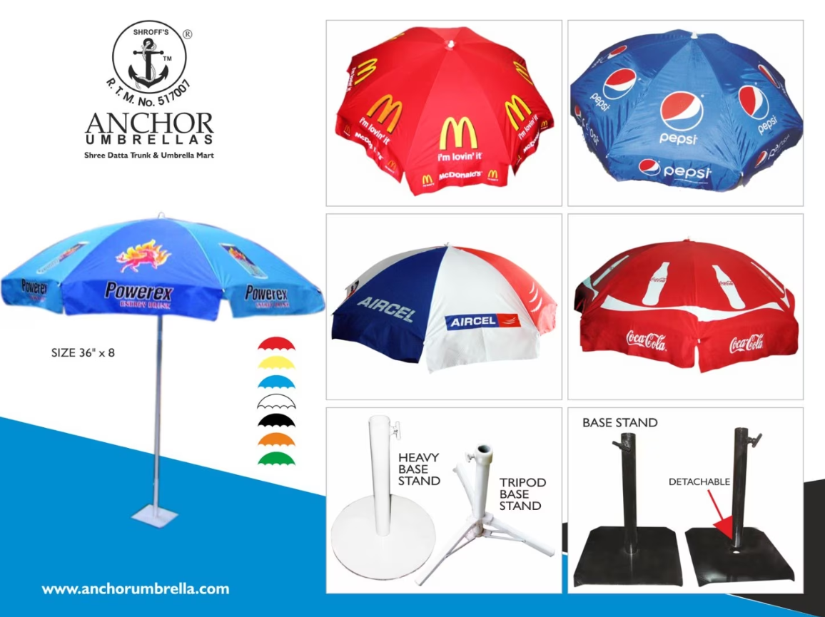 Shree Datta Trunk And Umbrella Mart stand as pioneers among umbrella manufacturers in Bangalore, crafting quality products that leave a lasting impression. Our fixed advertising umbrellas redefine outdoor promotions, providing unmatched durability and visibility.